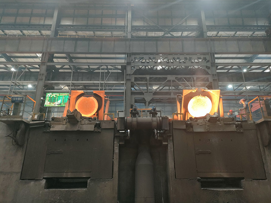 大型鑄造車間內,一座20噸一拖二電爐順利投產!這標志著寶山基地已具備單件200噸大型鑄件的生產能力,